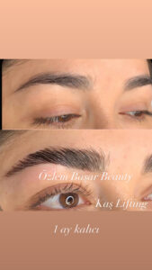 Kaş Lifting Kaşlarınıza şekil verilmiş düzgün bir form kazandırır ve ara boşlukları renklendirme yapılarak doldurulur. Kalıcılık 1 ay sürer. Uygulama süresi 35 dakika sürer